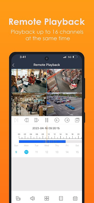 - ریکارڈ شدہ ویڈیو کی تاریخ کو منتخب کرکے اور اسکرولنگ ٹائم لائن کا استعمال کرکے دور سے ریکارڈ شدہ ویڈیو پلے بیک