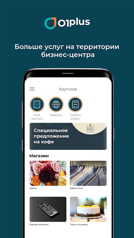ہم کاروباری مرکز میں آپ کے مواقع کو بڑھاتے ہیں۔ دفتر جانے کے لیے اپنے فون کا استعمال کریں - بھولے ہوئے پاسوں کے بارے میں مزید پریشان ہونے کی ضرورت نہیں۔ کاروباری مرکز کے باہر واقع سپلائرز سے سامان اور خدمات کا آرڈر دیں اور عمارت سے باہر نکلے بغیر آرڈر لیں۔ ہم نے مقامی فراہم کنندگان کو ایک جگہ پر اکٹھا کیا ہے اور آرڈر کو ذاتی بنانے کے لیے ایک آسان انٹرفیس بنایا ہے۔