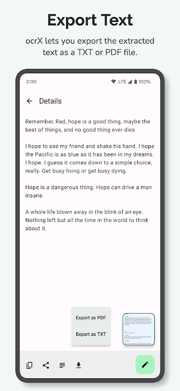 • نکالے گئے متن میں براہ راست ایپ کے اندر ترمیم کریں — فوری نظرثانی یا آخری منٹ کی تبدیلیوں کے لیے بہترین۔