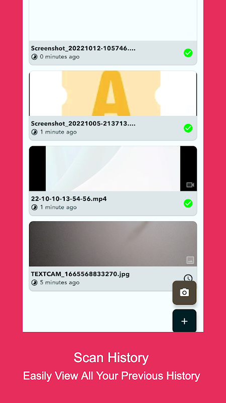 - اپنے نکالے گئے متن کو کاپی کریں، شیئر کریں اور محفوظ کریں، اور اپنے تمام اسکینز کی تاریخ دیکھیں