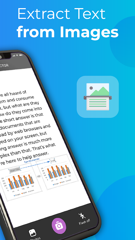 ایک امیج ٹو ٹیکسٹ ایکسٹریکٹر یا OCR (آپٹیکل کریکٹر ریکگنیشن) ٹیکسٹ اسکینر ایک ایسی ایپلی کیشن ہے جو امیج پروسیسنگ ٹیکنالوجی کا استعمال کرتی ہے تاکہ تصویروں، جیسے اسکین شدہ دستاویزات، فائلوں یا تصاویر سے متن کی شناخت اور اسے نکالا جاسکے۔ OCR: Text Extractor ایپ صارف کو تصویر میں موجود حروف کو پہچاننے اور انہیں مشین پڑھنے کے قابل متن میں تبدیل کرنے کی اجازت دیتی ہے۔ یہ صارف کو دستی طور پر دوبارہ ٹائپ کرنے کے بجائے نکالے گئے متن کو کاپی کرنے اور اس میں ترمیم کرنے کے قابل بناتا ہے۔