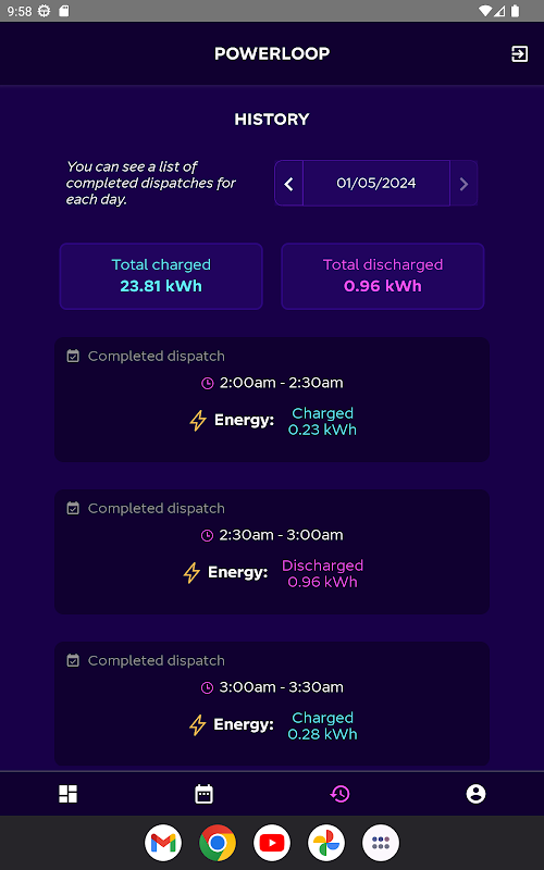 آکٹوپس انرجی پاور لوپ ایپ کا استعمال یہ سیٹ کرنے کے لیے کریں کہ آپ اپنی کار کو کب چارج کرنا چاہتے ہیں اور اپنی وہیکل ٹو گرڈ (V2G) سرگرمی دیکھنے کے لیے۔ بوسٹ اور اسٹاپ بٹن آپ کو اپنے فون سے اپنے چارجر کو کنٹرول کرنے کے قابل بناتے ہیں اور نیا سیٹ اپ آپ کو ہر روز شام 5 بجے کے بعد اپنا آنے والا شیڈول دیکھنے کی اجازت دیتا ہے۔ ایکٹو پاور اور مجموعی توانائی چارج اور ڈسچارج سبھی دکھائے جاتے ہیں۔