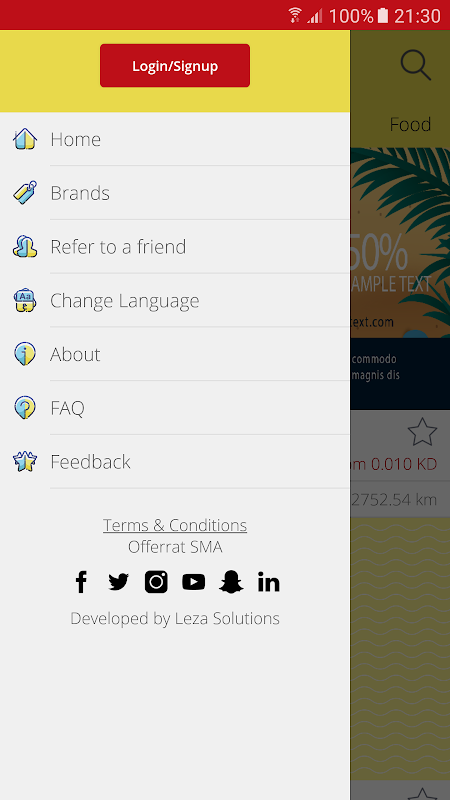 • Special section shows all the brands available in the app that shows the info about the brand plus all their offers.