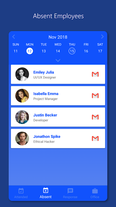 3. In Absent Screen, Employer will find the absent employees of the day and also employer can easily email that specific employees who is absent.