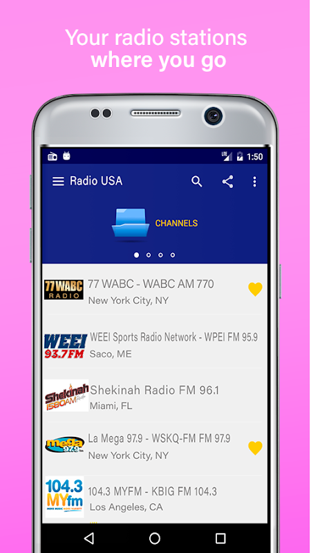 Hot 93.1, Kiss FM, BBC World Service, Hot 104.5, 105.9 KISS-FM, myTalk 107.1, Hot 103.5, 97 Country, Comedy 103.1, News Radio 95, 97.5 HOT103.9, Classic Hits 93.1, ESPN New York, The Beat, Chicago Public Radio, Hot 107.1, The MIX, NPR (National Public Radio), 107.9 Mix FM, Power 98.3, Rock 108, Talk 1260, 181.FM - The Beat (HipHop/R&B), Classic Hits 93.9, Hot 102.9, Jazz24, Country Legends 100.9, 89.3 K-LOVE Radio KLOV, Wild 96.7, Hot 97.5, Big Oldies 107.3