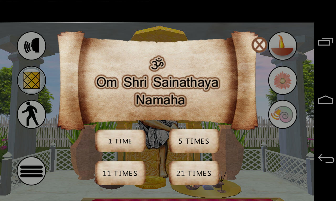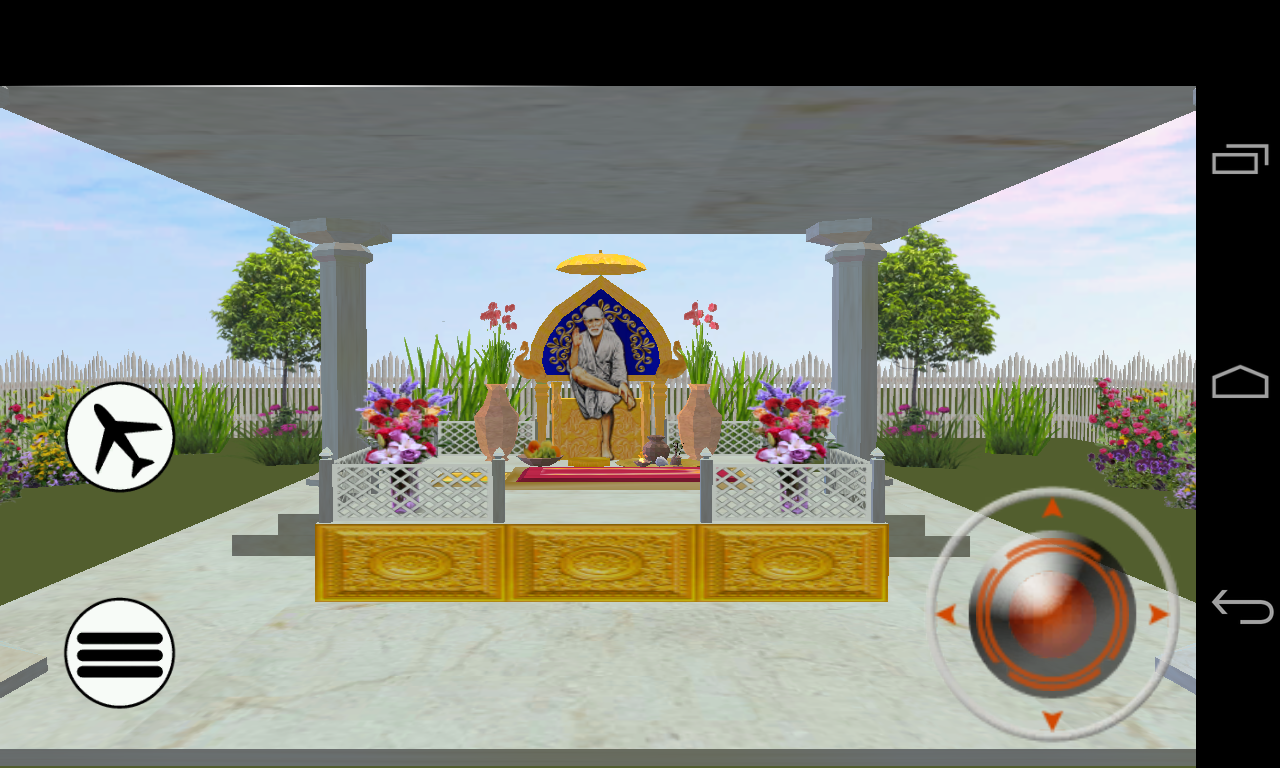This app is a 3D representation of Shirdi Sai temple in a picturesque backdrop. This temple along with an ambient flute sound and Sai dhun provides the perfect environment for prayer.