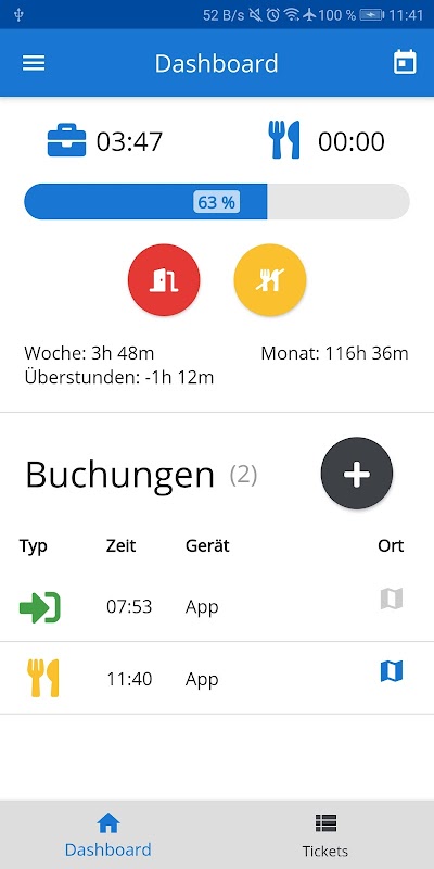 Erhalten Sie einen Überblick über alle geleisteten Arbeitsstunden in einer Tages- oder Monatsansicht. Damit werden alle Tätigkeiten genauestens dokumentiert und können direkt in die Abrechnung übernommen werden. Eine Live-Anbindung an das Terminal oder ein Export der Daten in die Buchhaltung ist möglich.