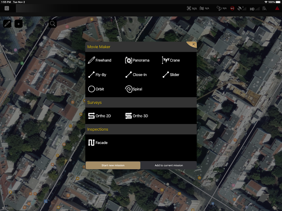 ایپ کو ڈرون پروازوں کی منصوبہ بندی کو آسان، تیز اور زیادہ درست بنانے کے لیے ڈیزائن کیا گیا ہے۔ یہ متعدد شکلیں منتخب کرنے یا ڈرائنگ کرنے کا امکان پیش کرتا ہے۔ اس کے بعد آپ انفرادی وے پوائنٹس کے لیے مختلف سیٹنگز بنا سکتے ہیں، جیسے کہ فلائٹ کی اونچائی، کیمرے کا زاویہ اور دلچسپی کا نقطہ، وہ نقطہ جس پر کیمرہ کا مقصد ہونا چاہیے۔
