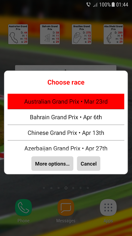 اپنے Android فون یا گولی پر F1Widget.com کے F1 get الٹی گنتی آپکے پاس وجٹس رکھیں تاکہ آپ کو یہ یاد دلانے کے لئے کہ آپ کو کبھی بھی کمی محسوس نہیں کرنا چاہئے!