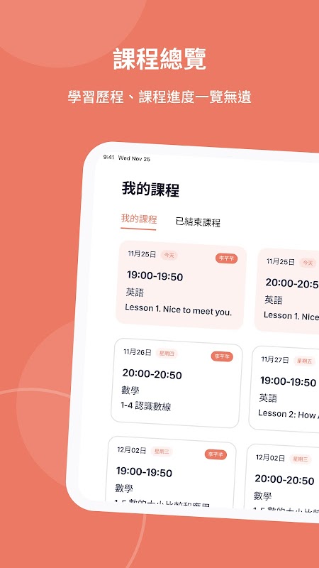 提供學員完整課表,課程資訊一覽無遺,再也不怕忘記上課。