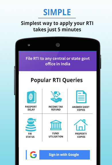 آر ٹی آئی - معلومات کے حق میں قانون کسی بھی ہندوستانی شہری کو حکومت سے معلومات حاصل کرنے کی اجازت دیتا ہے۔ آر ٹی آئی ایکٹ تمام 29 ریاستوں اور 7 وسطی علاقوں پر لاگو ہوتا ہے۔