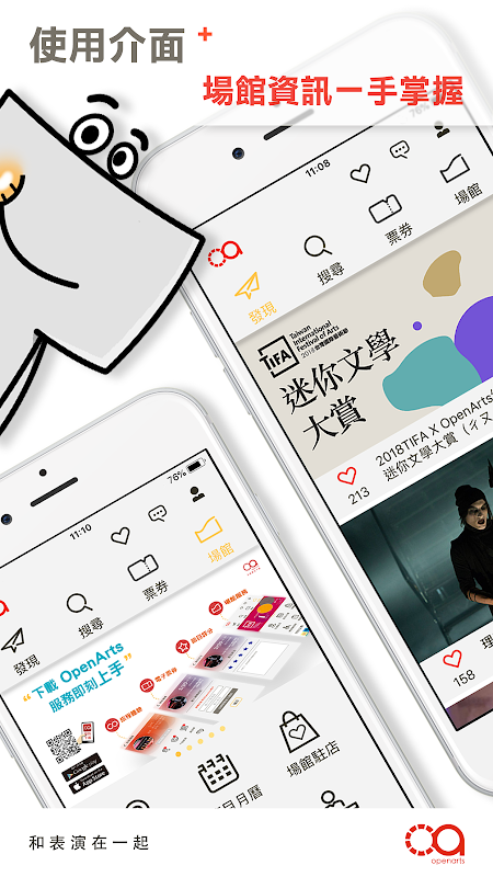 OpenArts 整合表演藝術多元資源,透過App一網打盡。從資訊推薦、搜尋演出到購票進場,讓您打開無限服務。OpenArts 讓您和表演在一起。