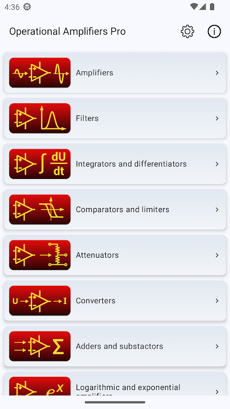 آپریشنل ایمپلیفائر پرو آپ کا سرکٹس کی ڈیزائننگ اور تجزیہ کرنے کے لیے آپ کا ضروری ٹول ہے جو op-amps کا استعمال کرتے ہوئے ہے۔ چاہے آپ طالب علم ہوں، الیکٹرانکس کے شوقین ہوں، یا تجربہ کار انجینئر ہوں، یہ ایپ آپ کو آسانی کے ساتھ op-amp-based سرکٹس کی وسیع اقسام بنانے، حساب لگانے اور سمجھنے میں مدد کرتی ہے۔