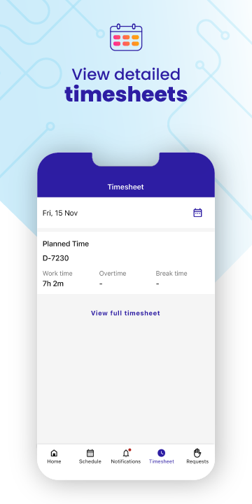 • اوقات کو ٹریک کریں: کسی بھی دن یا وقت کی مدت کے لیے اپنی ٹائم شیٹس دیکھیں، تاکہ آپ کو ہمیشہ معلوم ہو کہ آپ کہاں کھڑے ہیں۔