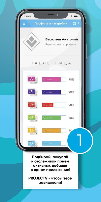 Optimazer поможет вам подобрать оптимальный курс БАДов ProjectV и отслеживать их прием. Задача оставаться здоровым и красивым никогда не решалась так просто!
