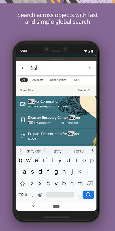 کثیر مطلوبہ الفاظ کی عالمی تلاش آپ کو جس چیز کی ضرورت ہے اسے تیز اور بدیہی بناتی ہے جس کے آپ ٹائپ کرتے وقت نتائج سامنے آتے ہیں۔ قابل عمل آئیکنز اور سیاق و سباق کی کارروائیاں ریکارڈز میں تیز اور آسان اپ ڈیٹس کے لیے پوری ایپ میں سرایت کر گئی ہیں۔