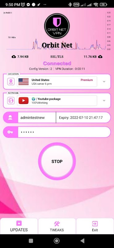 Orbit Net Proxy VPN Bandwidth Access(Direct Connection, Direct SSL/TLS, HTTP Proxy, SSL/Payload, SSL/TLE Proxy, SSL/ Proxy + HTTP Proxy, servers,