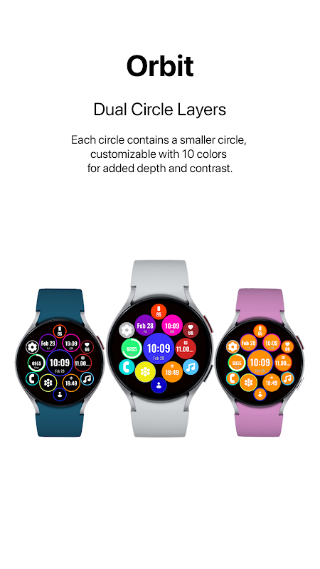 Orbit for Wear OS کے ساتھ، آپ کو اپنے واچ فیس پر مکمل کنٹرول حاصل ہے۔ فعالیت، حسب ضرورت اور انداز کے درمیان کامل توازن دریافت کریں!