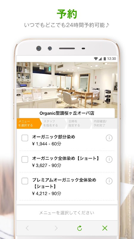 アプリから24時間いつでもご予約いただけます。