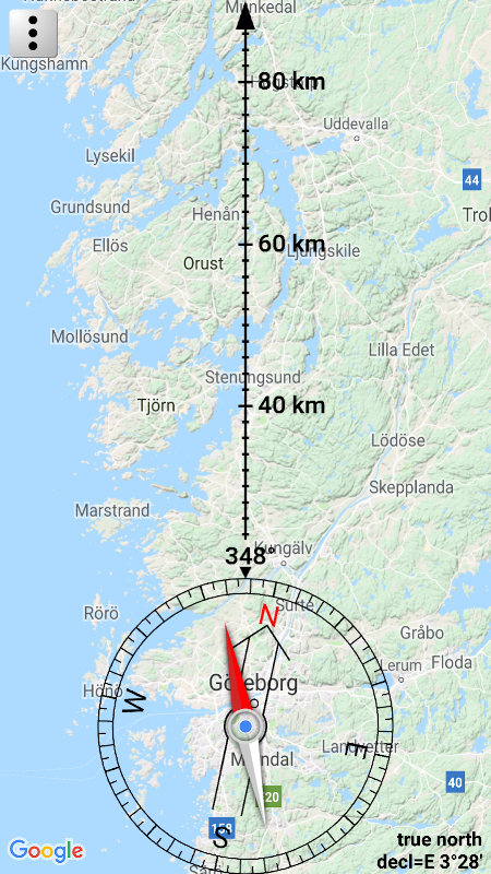 اس ایپ کی سمت اور فاصلہ تلاش کرنا آسان بناتا ہے جہاں آپ جانا چاہتے ہو۔ اس میں ایک کمپاس موجود ہے جو کلاسیکی واقفیت کو ممکن بنانے کے لئے نقشہ اور GPS کے ساتھ مل کر کام کرتا ہے۔ آپ نقشے پر اپنی پوزیشن (GPS پوزیشن) کو ایک یا دو انگلیوں کا استعمال کرکے نقشہ کو منتقل اور گھومتے ہوئے اپنی منزل مقصود کے ساتھ قطار میں لگ جاتے ہیں۔ فون / ٹیبلٹ کو اس وقت تک موڑیں جب تک کہ کمپاس انجکشن کمپاس اورینٹنگ تیر میں فٹ نہ ہوجائے۔ پھر فون / ٹیبلٹ منزل کی سمت اشارہ کرتا ہے۔