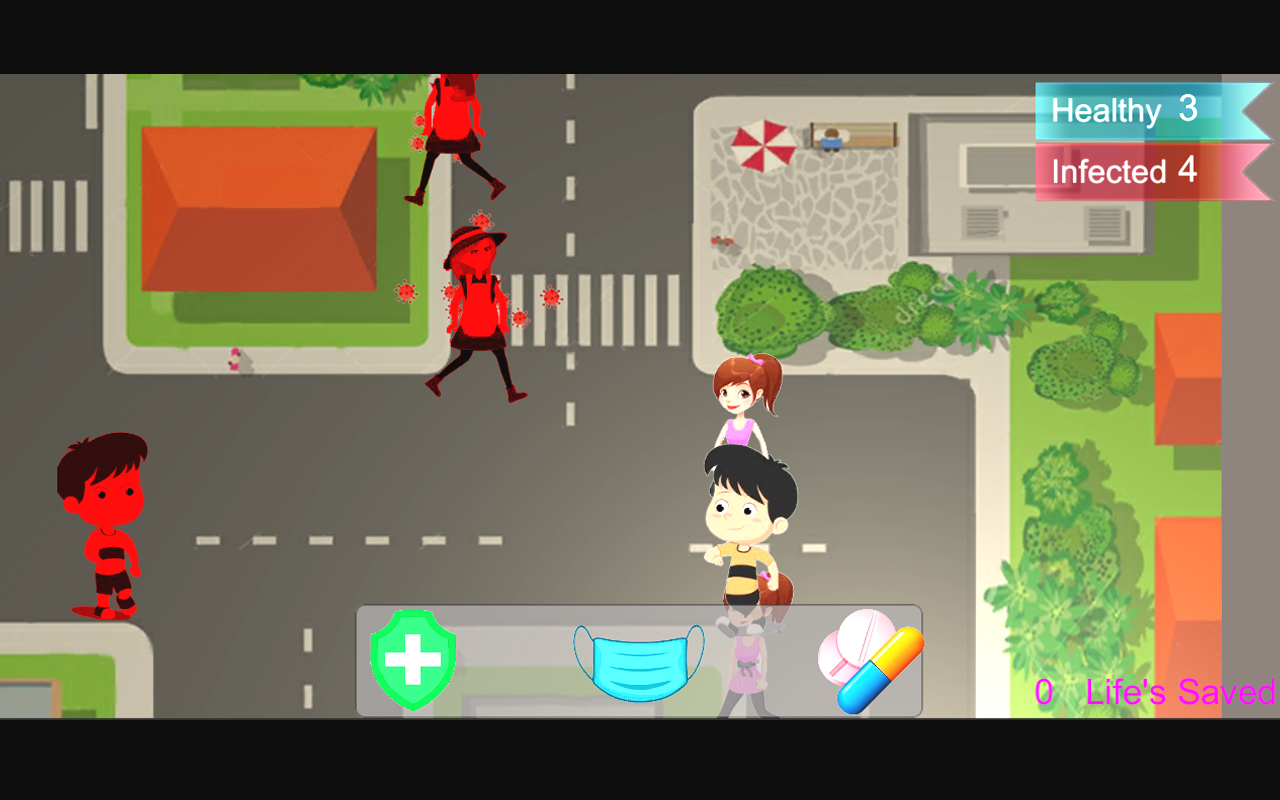 Player treat infected people immunizing and helping them to wear mask and by maintaining distance to every player.