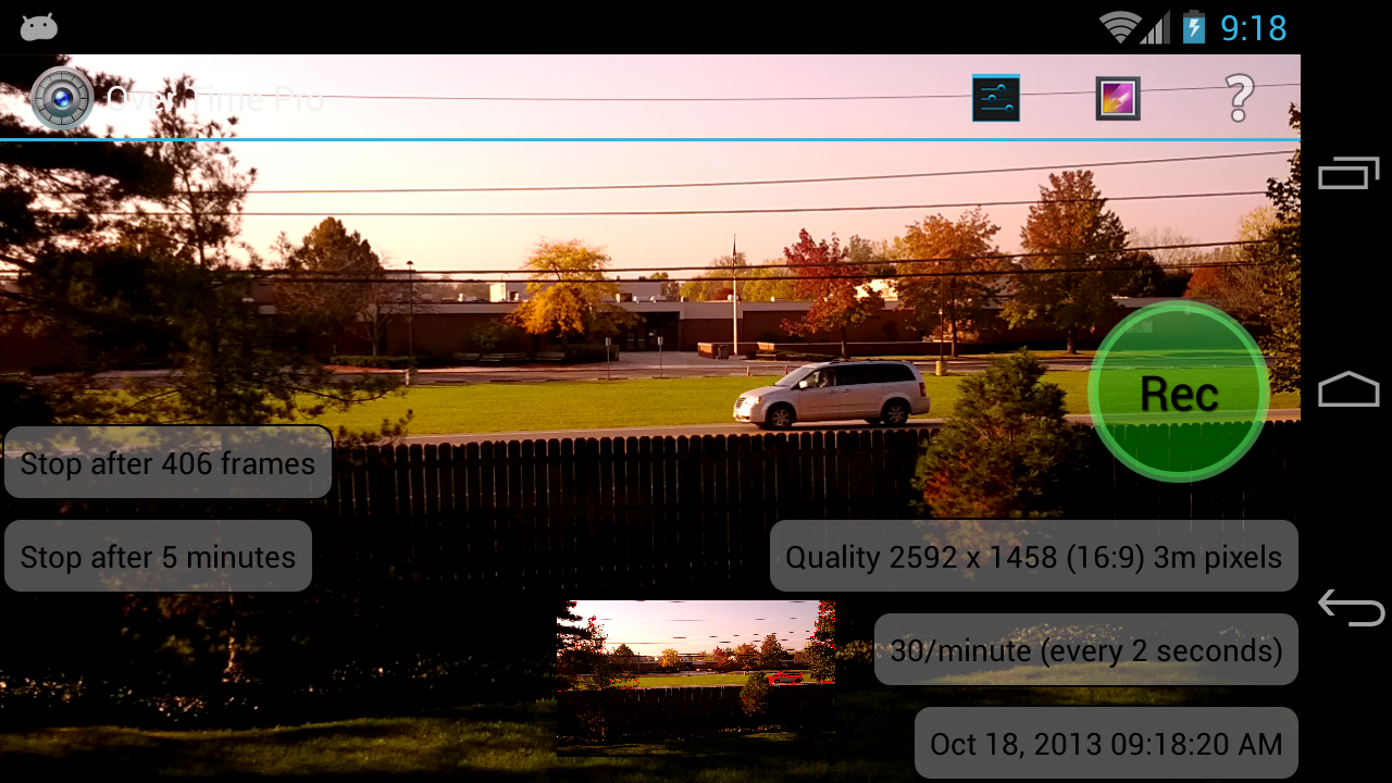 Record your own HD Time Lapse Videos with your phone or tablet. Over Time is a Time Lapse Camera with Overlays. Each recorded frame displays the current date, time, GPS location, direction and speed. The location overlay can be disabled.