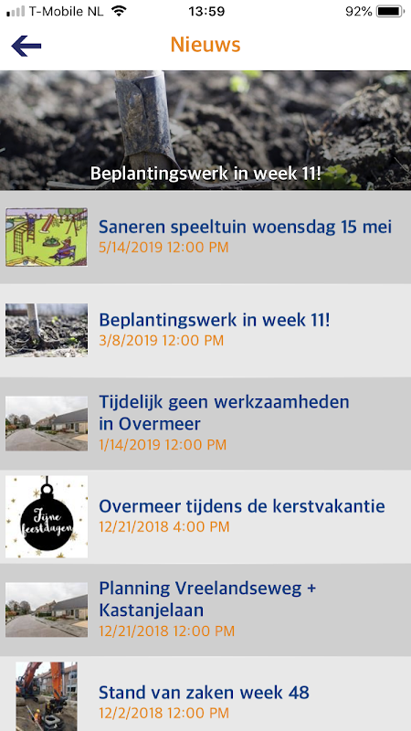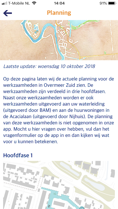 In deze app vindt u alle informatie over de werkzaamheden van het project 'Overmeer'. Er worden updates over de voortgang van de werkzaamheden en er wordt informatie over het project weergegeven. Ook kunt u op deze app vragen, opmerkingen of klachten achterlaten die betrekking hebben op het project.