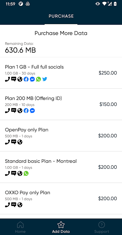 Basado en el tipo de patrocinio, tú podrás comprar paquetes adicionales directamente desde la aplicacion and pagarlos con tarjeta de crédito o débito o mediante tiendas de conveniencia.