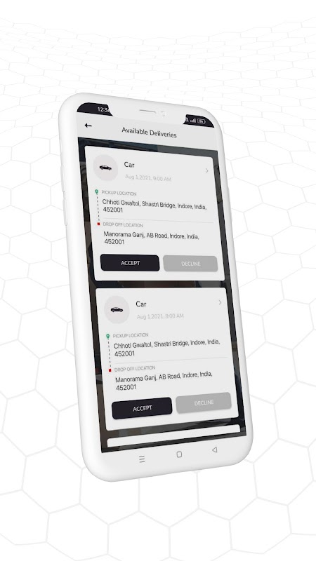 1. ہوم - دستیاب ڈیلیوری سیکشن پر ڈرائیورز قریبی دستیاب ڈیلیوری کی فہرست دیکھ سکتے ہیں اور ان کے پاس درخواست کردہ ڈیلیوری کو قبول یا مسترد کرنے کا حق ہے جبکہ دوسرے ڈرائیور ڈیلیوری کی درخواست کو قبول یا مسترد کرنے کا جائزہ لے سکتے ہیں۔ ڈرائیور ڈیلیوری کی درخواست کو قبول کرنے سے پہلے ڈیلیوری کی درخواست کی تفصیلات کا جائزہ لے سکتے ہیں اور اس قیمت کے ساتھ جو وہ قبول کرنا یا مسترد کرنا چاہتے ہیں۔