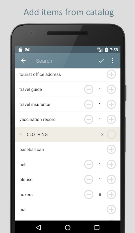• سامان میں سب سے زیادہ پیک کی جانے والی اشیاء کا بلٹ ان کیٹلاگ (تقریباً 400 آئٹمز)