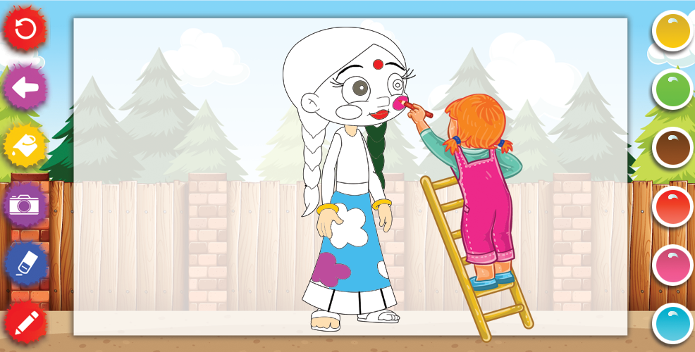 Kids can choose between multiple colors for drawing & painting. Kids can draw, fill, erase and save their drawing.