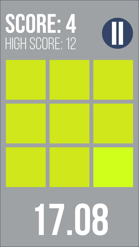 Every round, one of the nine squares will be assigned a color which is slightly different from the rest of the squares. Colors are randomly selected from an array of nearly 16.8 million colors to ensure a different experience each time you play! Find which square is different to earn a point. Choosing an incorrect square will deduct one second from the game's timer, and every ten correct squares will award the player with an extra ten seconds added to the timer.