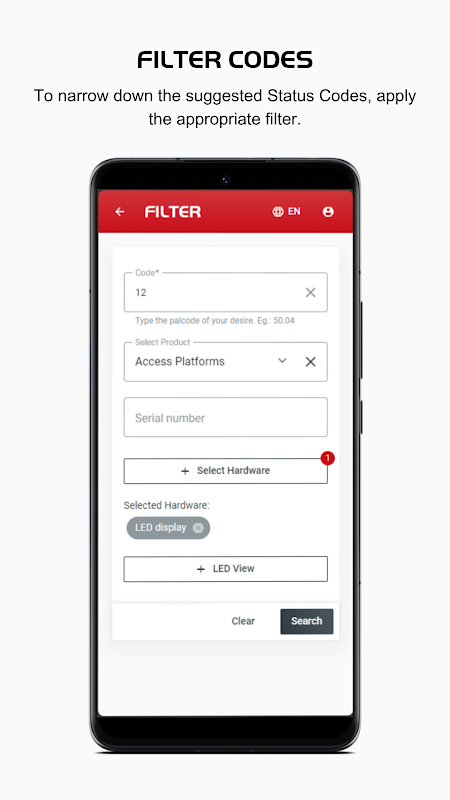 4. پروڈکٹ لائنز کے لیے وقف شدہ فلٹرز: خصوصی فلٹرز کے ساتھ اپنی تلاش کو مزید بہتر کریں۔ مثال کے طور پر، ایریل ورکنگ پلیٹ فارم آپریٹرز نہ صرف عام کوڈز استعمال کر سکتے ہیں بلکہ سیریل نمبر بھی شامل کر سکتے ہیں، پروڈکٹ کی مختلف حالتوں کا حساب کتاب کر سکتے ہیں اور درست حل کو یقینی بنا سکتے ہیں۔ مزید برآں، 8 بٹ LED ویو کے ذریعے ایرر سگنلز کی تشریح کو آسان بنانے کے لیے، ہم نے صارف دوست گرافک انٹرفیس متعارف کرایا ہے۔ اب، صارفین آسانی سے اس انٹرفیس میں ایل ای ڈی لائٹس داخل کر سکتے ہیں، ریزولوشن کے عمل کو ہموار کرتے ہوئے۔ پال کوڈ کی خصوصی "ایل ای ڈی ویو" خصوصیت دستی کوڈ کو سمجھنے کی ضرورت کو ختم کرتی ہے، اسے صارفین کے لیے مزید قابل رسائی اور موثر بناتی ہے۔
