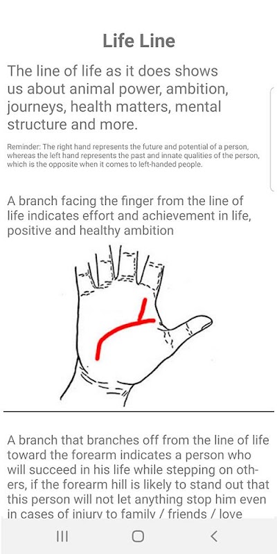 The app is actually a detailed handheld reading guide, the app is full of illustrations with highlights for each line so it is very easy to use and identify the marks that appear in the palms by the illustrations,