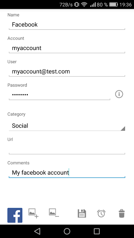 • Varios campos a completar: cuenta, usuario, url, comentario..