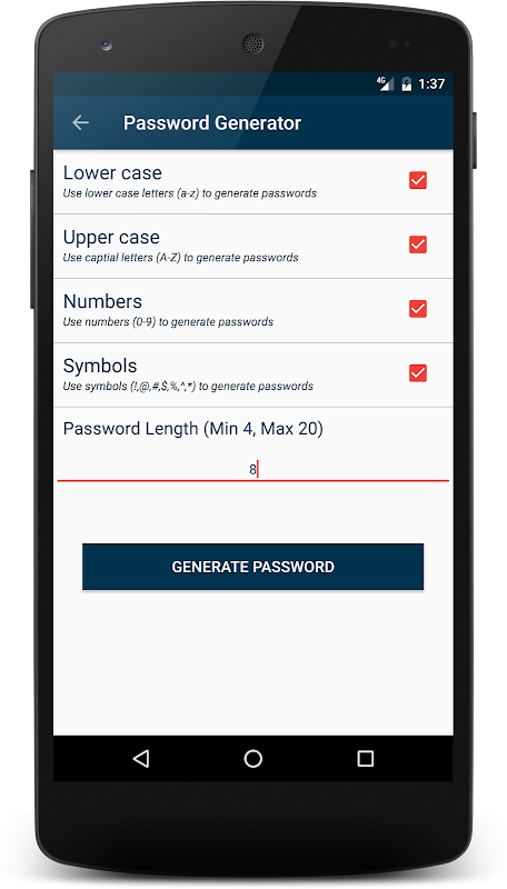 3. User will have to login in always. So in case you lost your phone, you can rest assured knowing that no one can get into the application and check your password.
