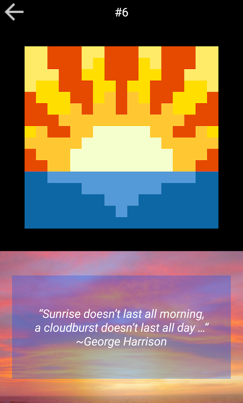 Finish solving to see the miniature picture that you have created. As an extra reward you get a quote related in some way to the picture. Witty or wise, it will give you a little something to think about as you go on to the next puzzle.