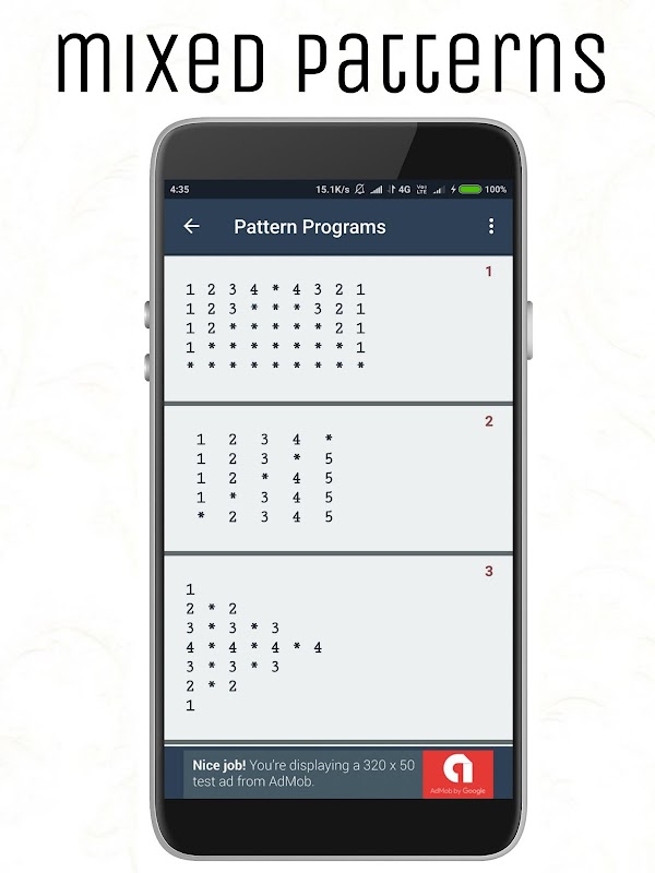More than 500 Pattern programs available in Java and C/C++ with output.