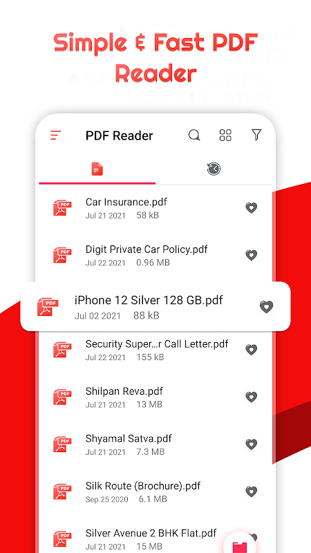 📜 Recent file: Open the last opened PDF file without wasting time searching for them.
