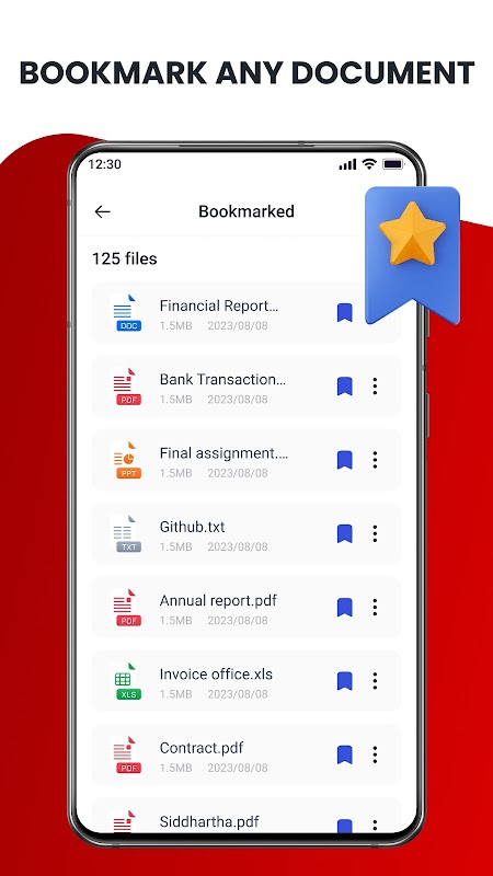 - دستاویز دیکھنے والا تمام فارمیٹس کے لیے سپورٹ کرتا ہے: PDF، DOCX، XLS، PPT، TXT۔