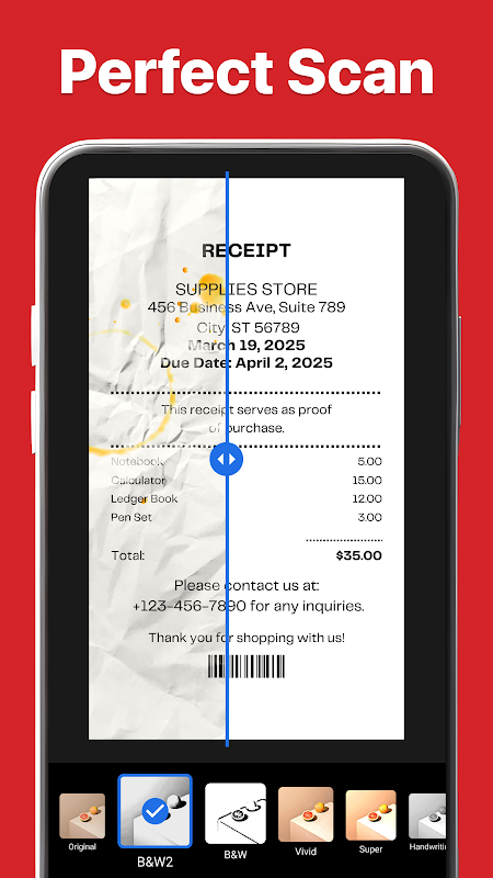 Improve scanned documents with multiple enhancement filters. Adjust brightness, contrast, and sharpness to make text clearer. Whether scanning handwritten notes or printed documents, this PDF scanner delivers high-quality results.