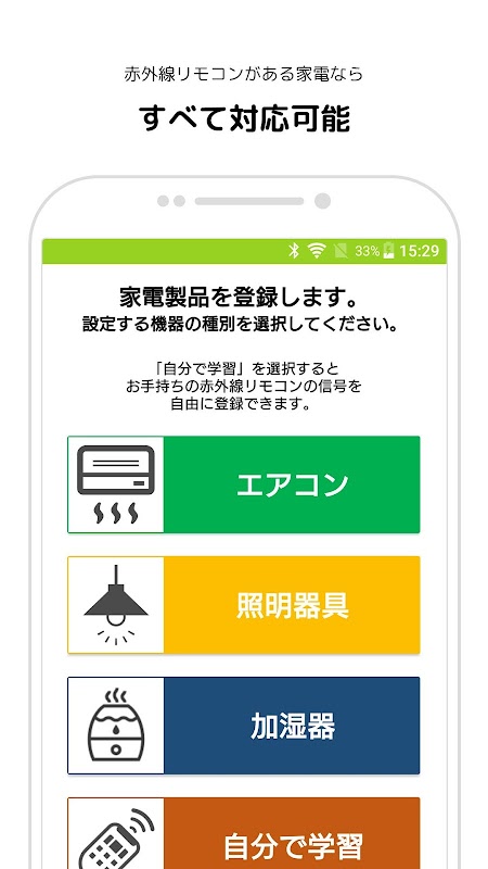 エアコン、照明などの操作を外出先から行えるほか、お手持ちのリモコンを登録すれば、
