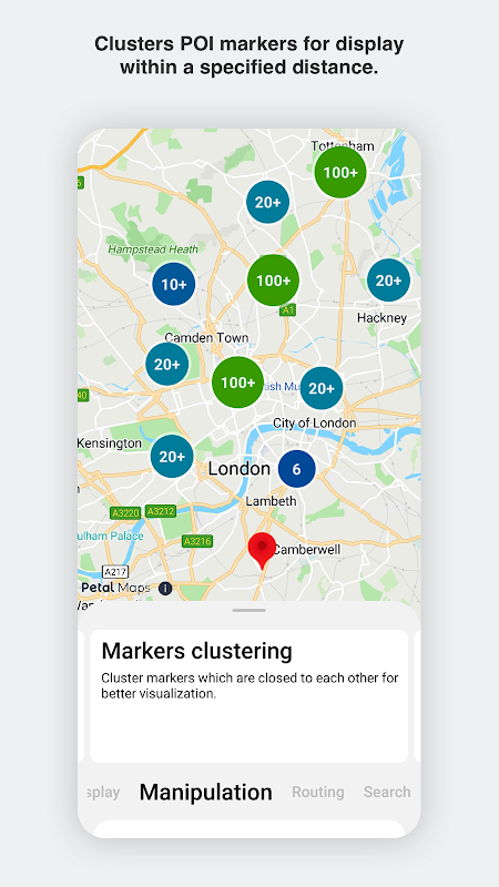 نقشے کی نمائش ، راستے کی منصوبہ بندی ، اور جگہ کی تلاش جیسے افعال کا مظاہرہ کرتا ہے۔