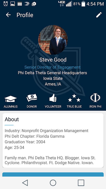 Phi Delta Theta International Fraternity was founded in 1848 and has initiated more than 250,000 members into the organization. The Phi Delt Network is a powerful mobile application that allows initiated members of Phi Delta Theta Fraternity to connect and network with each other.