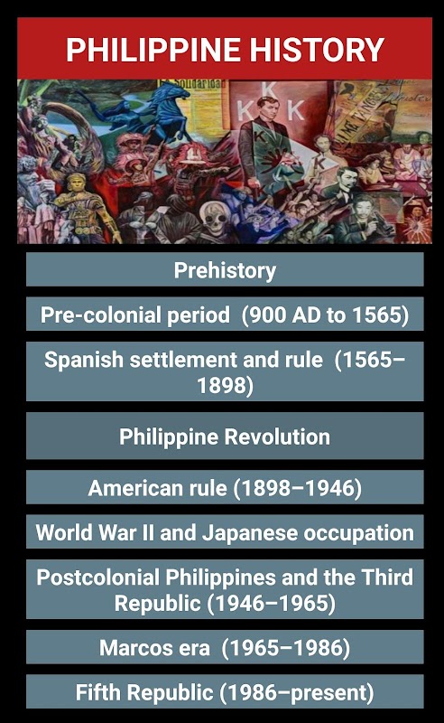 The rich history of the Philippines is the reason why this App was created in order to provide a ready reference about the beautiful country. This app contains information on the following: