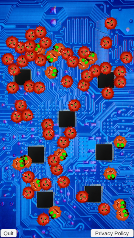 The game has 4 levels, on each level, you will need to kill approximately 60 bugs that will be spawning on your screen as soon as they touch the phone chips, your task is to stop the spreading of the bugs by squashing them by pressing the bug image on the screen.