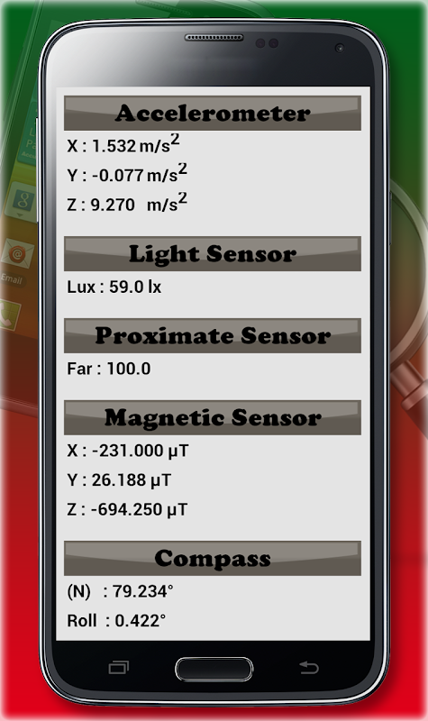 You Can Use phone tester for sensor readings a very useful and handy application for measuring the exact and current values of all mobile sensors