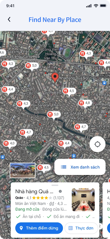 - جگہوں کے قریب تلاش کریں: کھانے پینے کی اشیاء، خدمت، کرنے کی چیز، خریداری