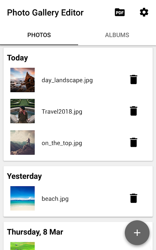 Edit your photos, organize your gallery and create collages and photo albums in PDF