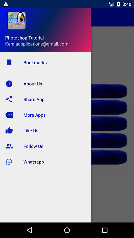 It is a tutorial Android App and included only Basic ideas of Photoshop 7.0